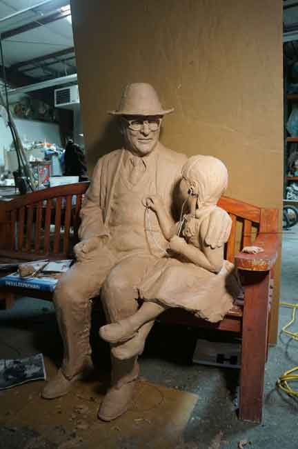 Sculptor Stan Watts Working On The Clay Model Of Dr. Dohner